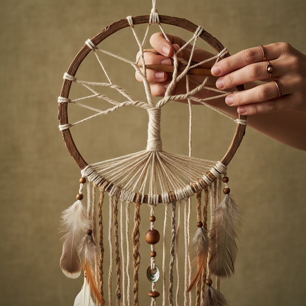Le caractère intemporel d’un attrape-rêves arbre de vie se joue dans la qualité des matières et la précision du tissage. Les fibres végétales, les essences de bois locales et les plumes issues de filières éthiques offrent une présence délicate et durable. Attention aux colles et finitions : privilégier les assemblages simples, les vernis à l’eau et les teintures végétales lorsque possible. L’objectif : une pièce belle, stable, respectueuse de l’environnement et agréable au toucher.