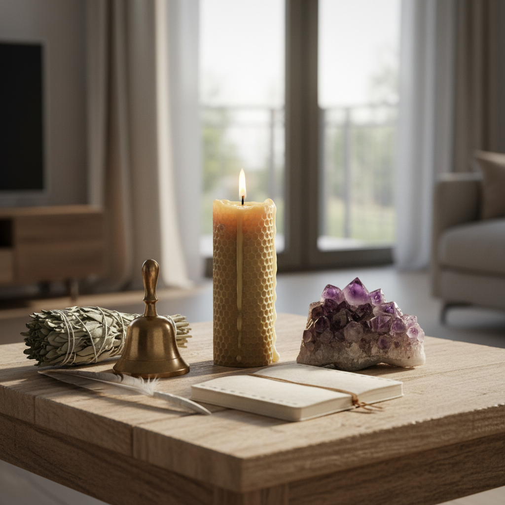 | Bougie rituelle | Intention, focalisation, méditation 🧘 | Cire naturelle, couleur adaptée, base stable 🧱 |