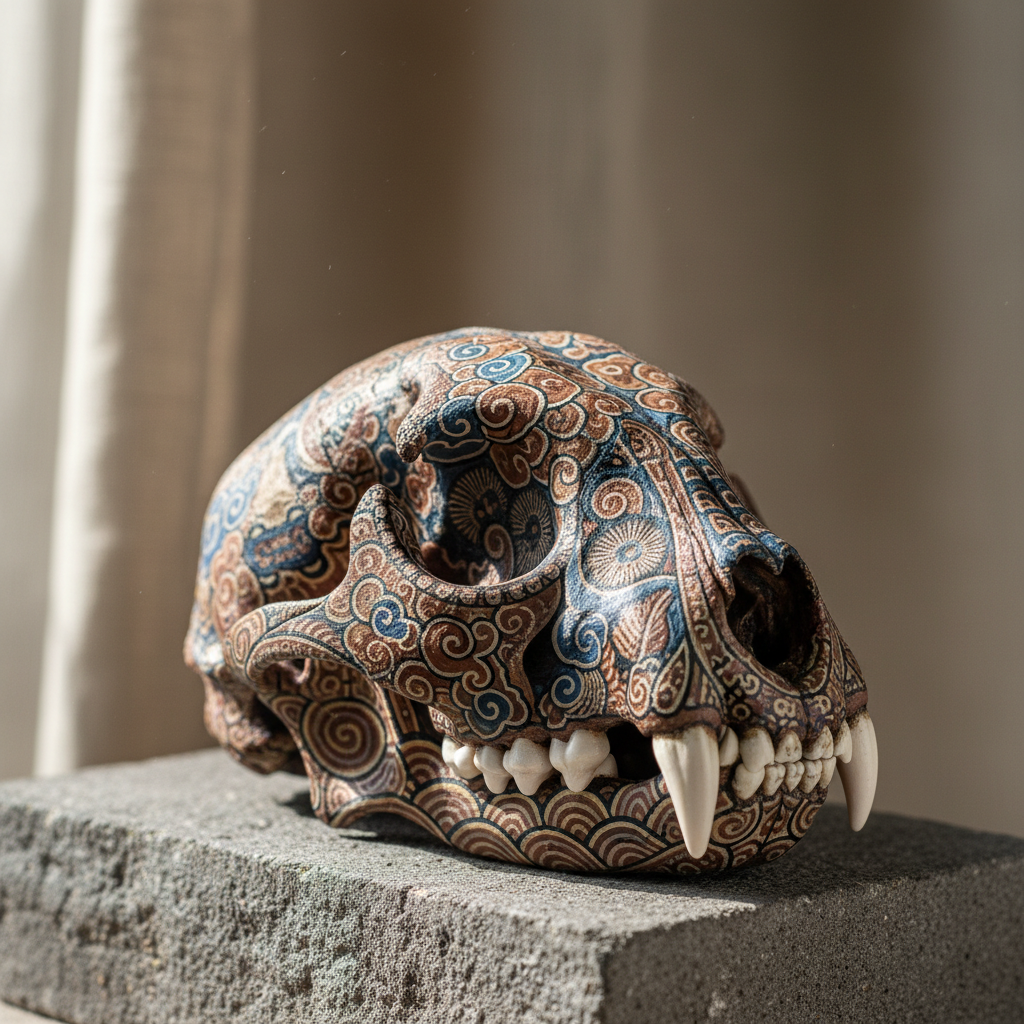 Dans la tradition javanaise, la bête est à la lisière entre villages et forêt, protégée par des esprits gardiens et parfois associée aux ancêtres. Ce rôle liminal nourrit la valeur du crâne comme seuil symbolique : on lui attribue la capacité d’ouvrir un espace à la contemplation et à la prudence. Des récits de tigres-garous et de dhanyang disent l’ambivalence : protecteur du territoire et figure de vertige. Cette dualité se retrouve en décoration où le crâne, même en réplique, convoque un sentiment de respect, évitant l’écueil d’une pièce purement décorative sans âme.