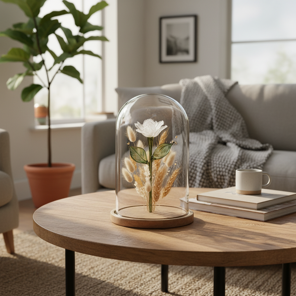 | Fleur | Stabilisée, séchée, verre artisanal | Colorants instables | Tester la tenue à la lumière indirecte 🌤️ |