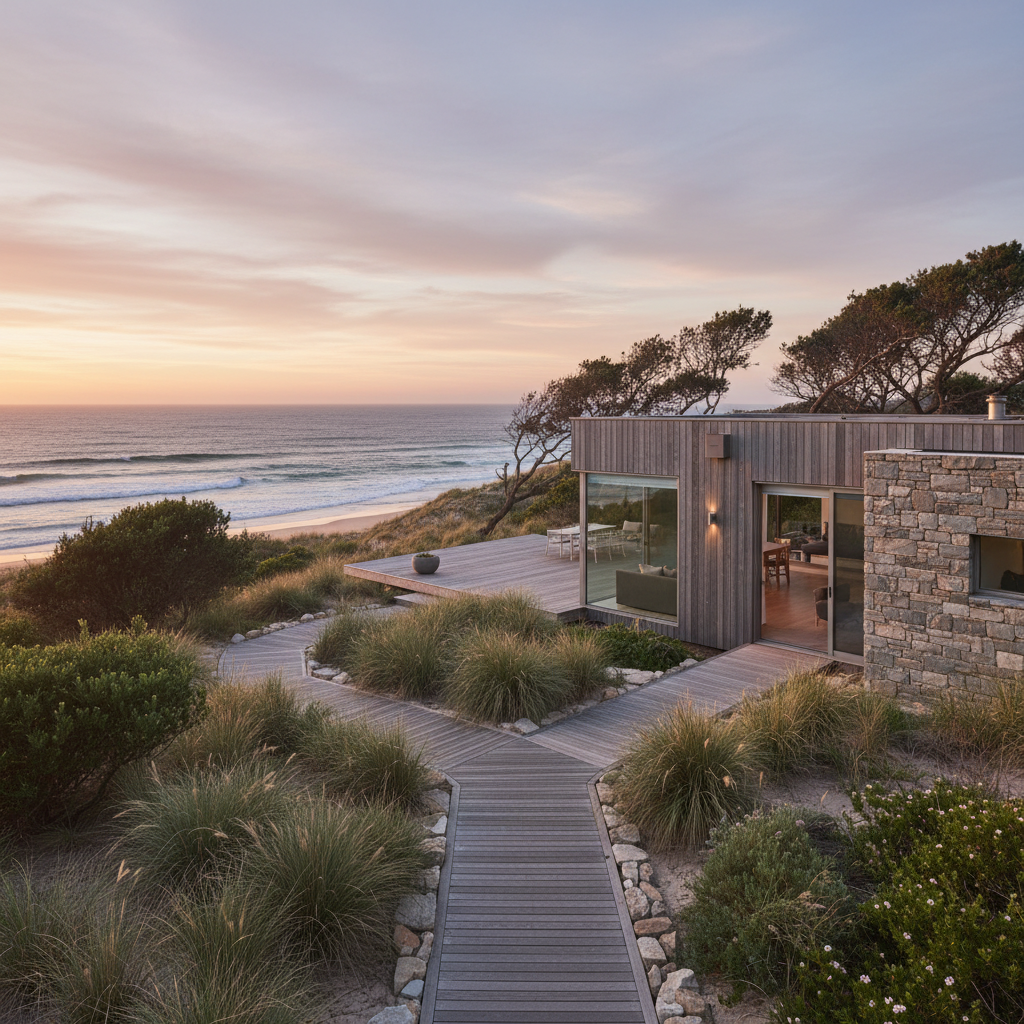 Une maison australienne au style naturel, nichée en bord de mer : site, climat et paysage côtier